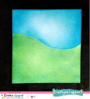 •For this, cut a hill pattern on a masking sheet, place it on the cardstock.