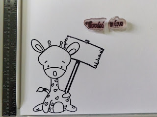 - Stamp the giraffe image from the Giraffe Love stamp set using Ranger Black Archival ink, on a white cardstock, 300 GSM.